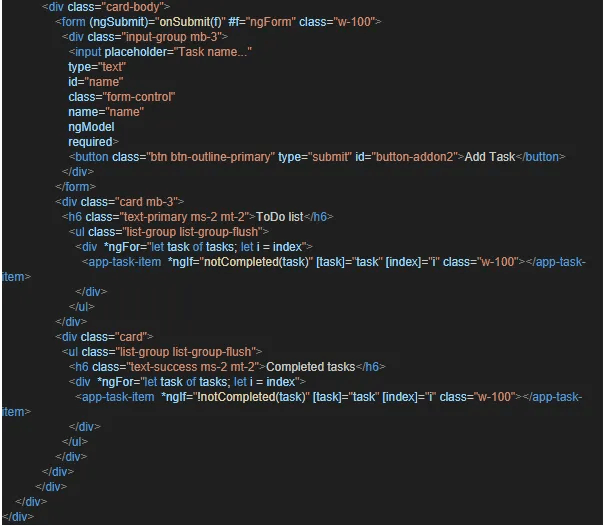 The task-list component includes two structures directives, *ngFor and *ngIf. These directives affect the whole DOM. *ngIf displays an element only if a condition is met while *ngFor iterates over a collection to dynamically create and display repeated sets of an html element.